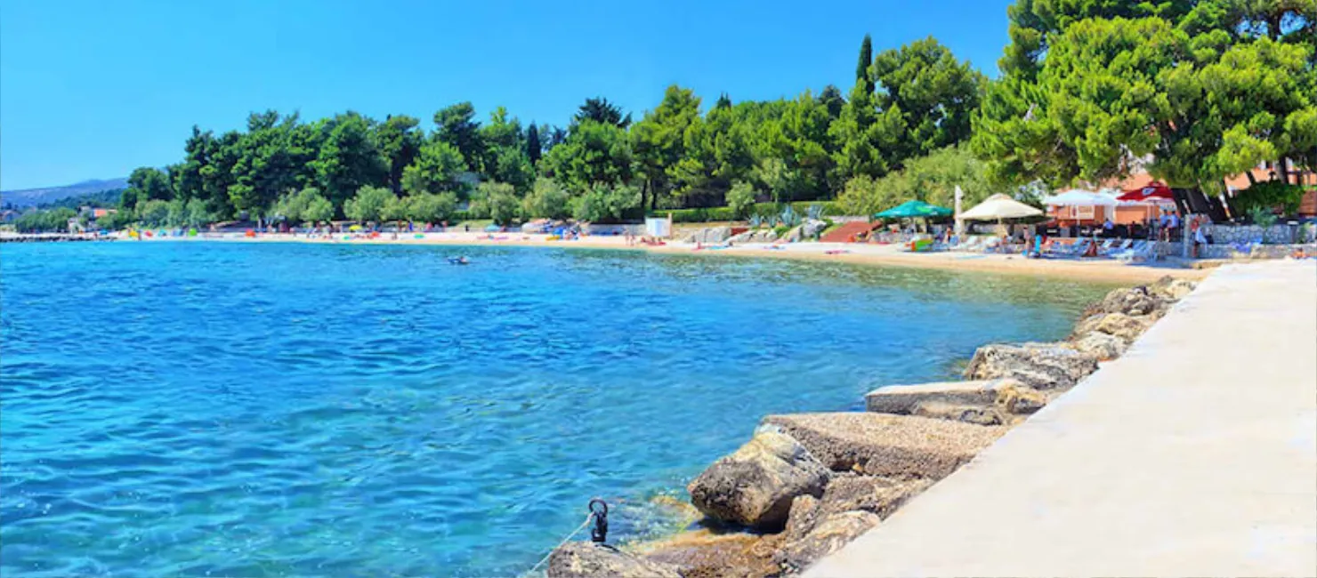 A private half-day route that combines beach time with a stop in historic Trogir.